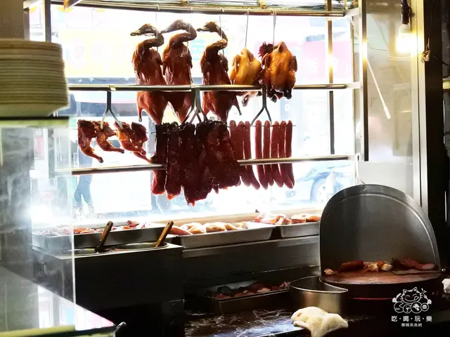 ▲『港龍燒臘』從裡面看更清楚,多種燒臘吊在上面展示,就很吸引人!