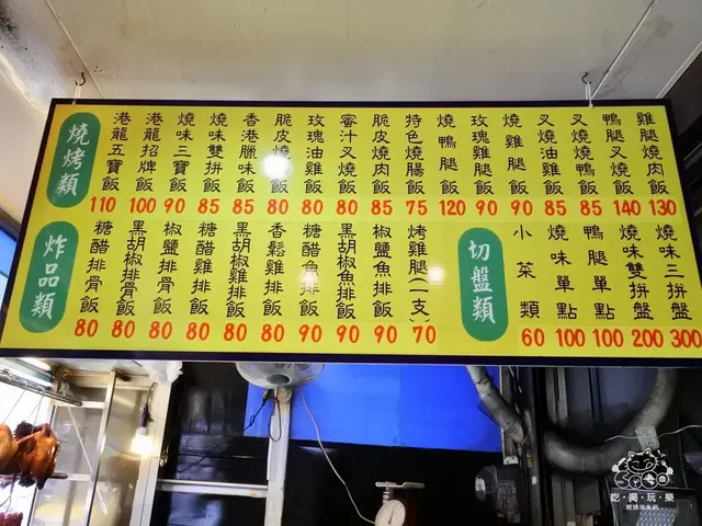 ▲『港龍燒臘』一進店門口就可以掛在上面的菜單看板,種類很多種可以選擇!