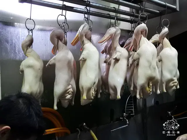 ▲『港龍燒臘』廚房的工作人員正在處理這些光溜溜的鴨子,還沒做成燒臘時候的樣子就是這樣囉!