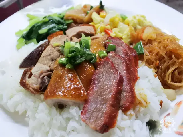 三寶飯可以算是店內的招牌,所以當然一定要嘗看看,三寶就是有叉燒、燒雞、烤鴨,每一種都很吸引人,叉燒吃起來很軟嫩有嚼勁,吃起來香甜可口,肉咬起來有一定的脆度在,這樣不失彈性卻又兼具口感;燒雞的皮很軟Q,肉質也相當鮮嫩,香氣很迷人;燒鴨外皮吃起來QQ的,吃起來有濃濃的鴨肉香,肉質吃起來質嫩爽口,令人難以抗拒!
