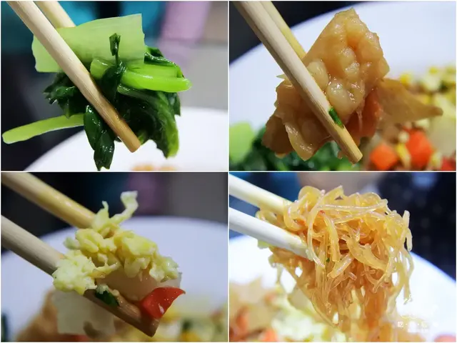 ▲『港龍燒臘』每天的配菜都會變換,當日配菜苦瓜吃起來非常甘甜,不會像一般便當店吃起來苦味那麼重;洋蔥炒蛋蛋香氣十足;炒冬粉炒的非常入味好吃;炒油菜非常清脆爽口!