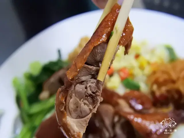 整支燒鴨腿外皮烤的油油亮亮,光看就令人食指大動,燒鴨腿皮吃起來酥酥的,肉質香甜多汁,吃一口就可以感覺到肉汁四溢的幸福感,彈牙脆爽的好滋味,令人愛不釋口!