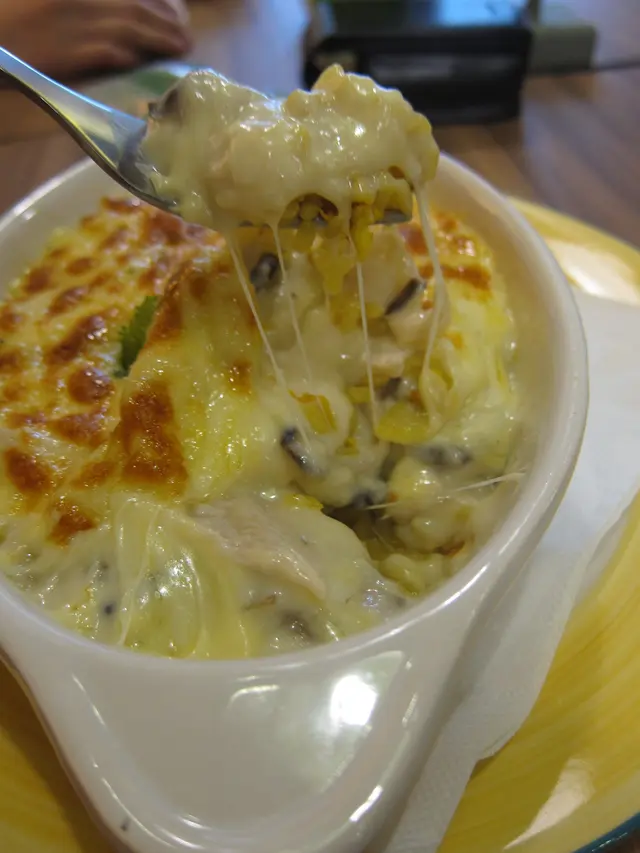 即使焗烤濕濕軟軟黏黏,廚師依舊把米飯的乾濕程度掌控好,我好愛阿heart