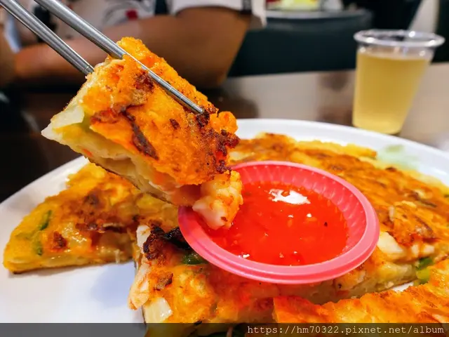 厚度…有比其他間厚一些啦,裡頭海鮮料確實滿豐富,不會咬下去都是粉漿