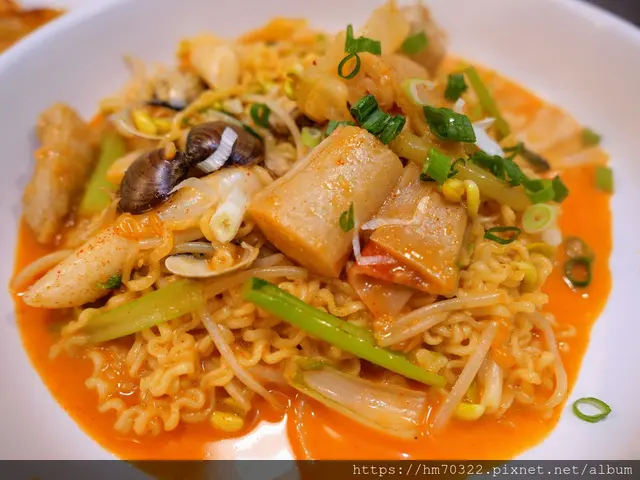炒麵配料有基本款的韓式年糕、豆芽、高麗菜、蛤蜊以及一些火鍋料