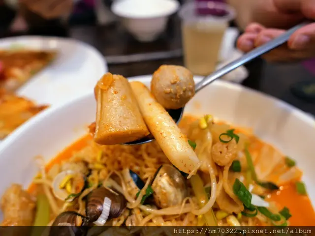 雖沒有海鮮豆腐鍋的鮮味,取而代之在湯裡加了起司,讓尾韻的辣變的溫和順口的吸引力