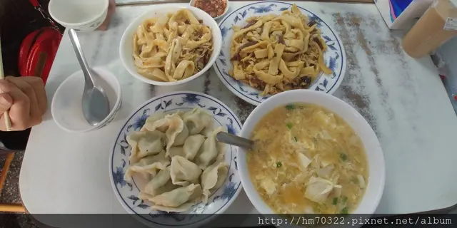 今天我們點了炸醬麵+木須炒麵+10顆韭菜豬肉餃+豆腐蛋花湯+魯味…