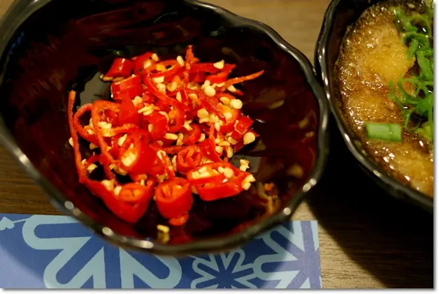 醬料若點選辣味者,會再附上一碗新鮮的辣椒切片,OH....這很辣,千萬不要一下加太多哦