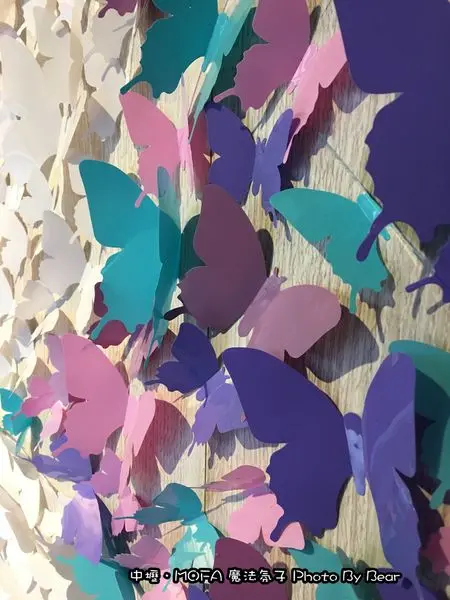 進到店裡,門後面是有著一面蝴蝶造型的視覺牆