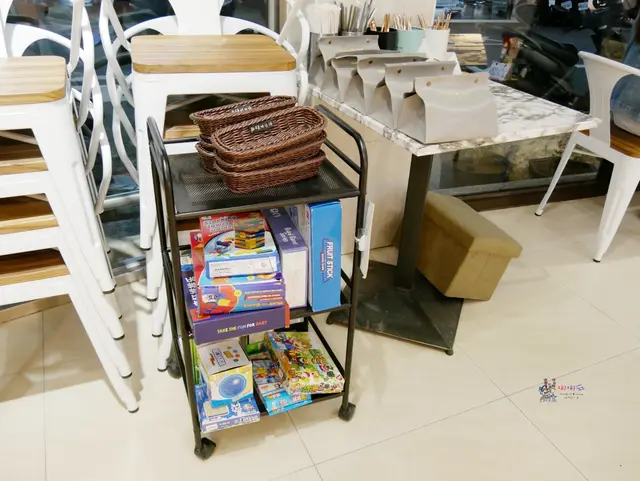 我很喜歡的是他們大面落地窗的設計,讓空間不會感覺很狹小,光線好並且很有透視感。店家也很貼心的放置了桌遊,讓大家來這邊除了吃蛋糕聊天,也可以玩玩桌遊打發時間。