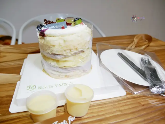 魔法氛子是中原夜市商圈專門賣蛋糕、甜點的甜點店,主打千層蛋糕、戚風蛋糕、生日蛋糕,有販賣整模8吋蛋糕或是切片,可以外帶、內用,很適合大家慶生、聚餐、聚會、聊天、送伴手禮時購買,或是相約好友姊妹來喝下午茶聊八卦,整體環境很放鬆舒適,最近還有推出四吋千層蛋糕,小家庭或人少的話可以買喔!