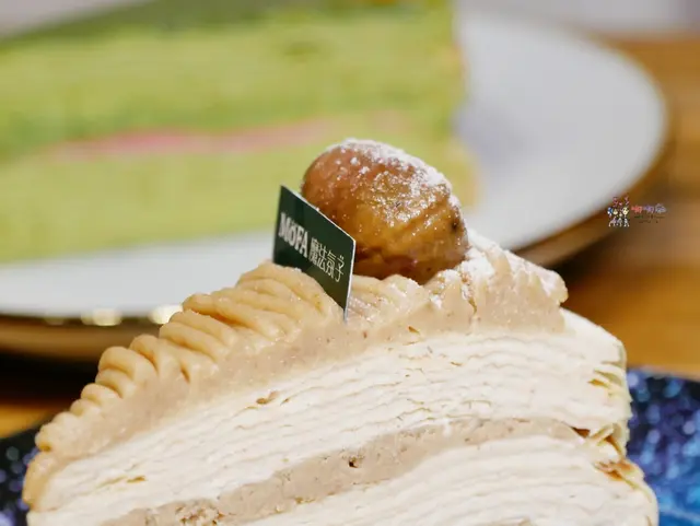 以前我們看到的栗子蒙布朗大多都是戚風,然後上面擠上像麵條一樣的栗子泥,魔法氛子卻把栗子蒙布朗變成了千層蛋糕,上面一層厚厚的栗子泥,中間也夾入兩層厚厚的栗子泥,一整個栗子味道濃郁。