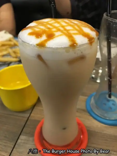 鮮奶茶上淋有焦糖漿,奶香中帶有焦糖味,不會太甜,還蠻好喝的