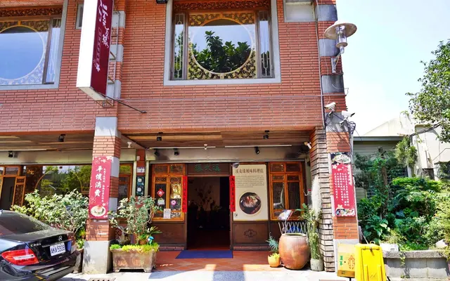 紅磚造型的客家餐廳裝潢的古色古香,精雕細琢。