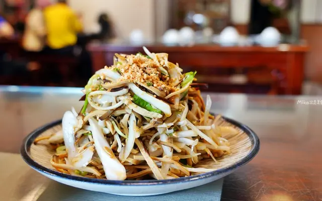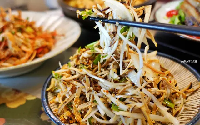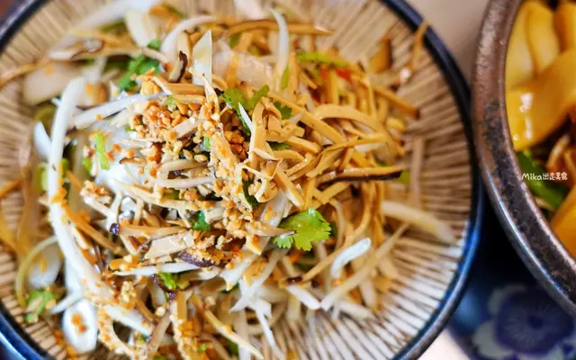 來大溪當然少不了吃豆干是不是!而這道菜用的還是烏豆干呢。搭配新鮮的大白菜、香菜、蒜苗、辣椒切絲,永醋溜和香油調味,再撒上大量的花生碎,酸爽開胃,做為開胃菜非常適合,懂點。