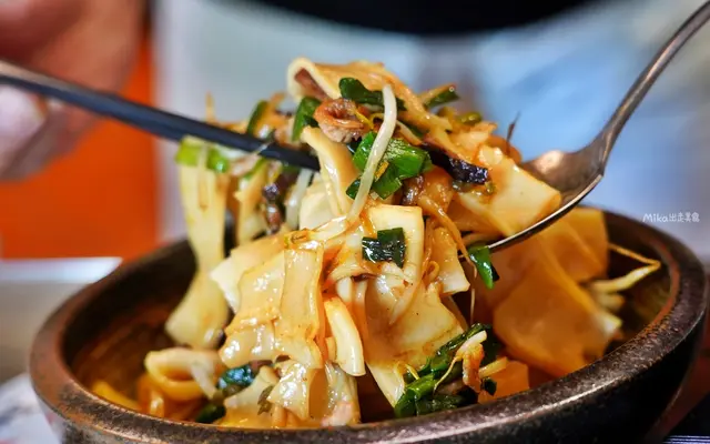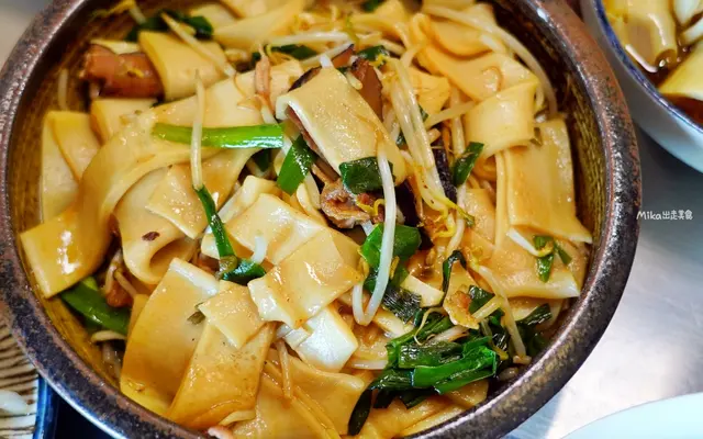 這道菜也是僅平日供應喔,但真的很值得平日來吃。寬板條搭配醬油、香菇、肉絲等下去拌炒,調味還加了點醋提味,帶點微微酸香鹹的口感,特別鹹香爽口,多吃不膩。