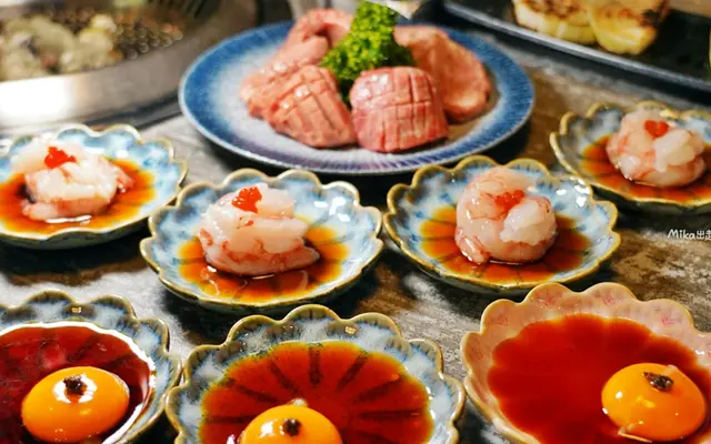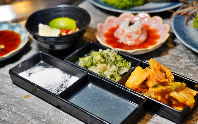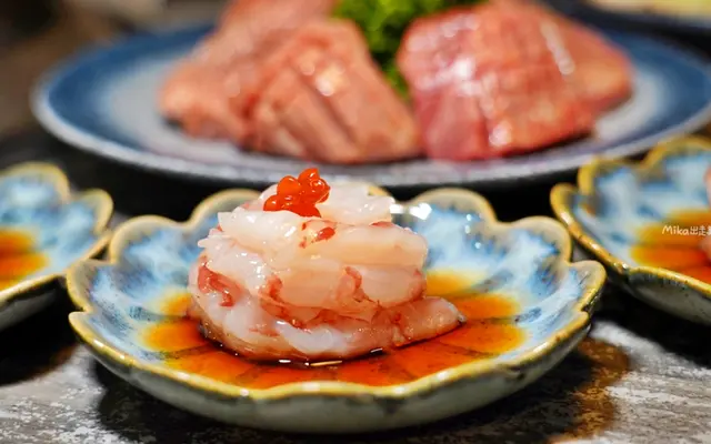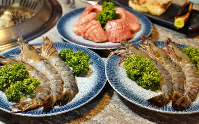 這根本精緻到跟無菜單料理餐廳沒兩樣了!一般吃到飽燒烤根本很少見到這麼高級的食材跟擺盤。生食級干貝漢堡、赤海老刺身也是隨便你吃,擺盤精緻沒在馬虎的。