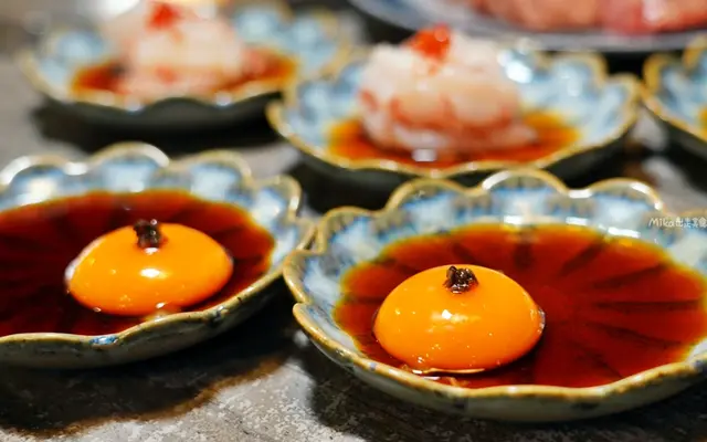店家特製沾醬!是沾醬喔!我朋友以為是單吃的,直接一口吞,笑死。老闆說這次拿來沾燒肉吃,跟壽喜燒沾醬概念一樣,生食級雞蛋黃,搭配上清爽的日式醬油以及松露增添香氣,甜鹹還有蛋黃香氣與滑潤口感,沾燒肉真的很一流。