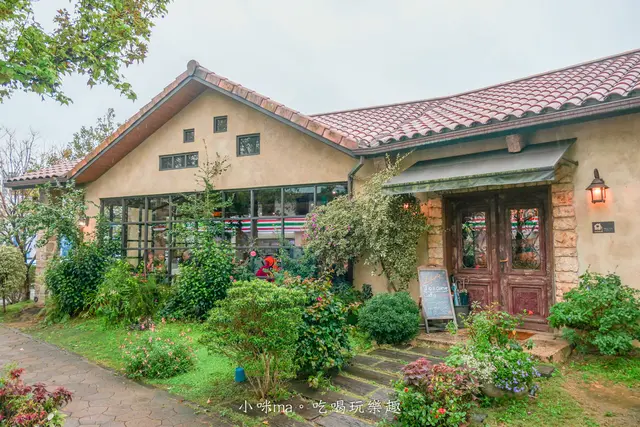 來這天下著雨,但每個角落還是充滿夢幻的氛圍,鵝黃色系的建築搭配門外的綠色草皮跟花叢造景,說你出國我都相信啦