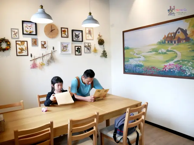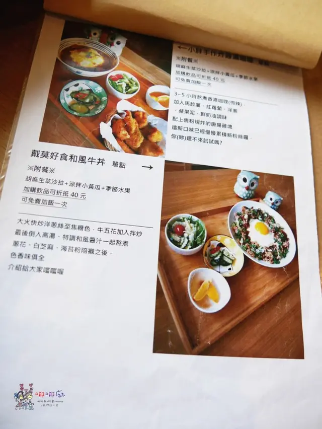 我們今天的位子是在裡面的大桌,牆上有放店裡的貓咪照片和乾燥花之類的布置,靠窗也比較明亮。不過這邊有一點悶熱,如果人多的話才建議坐來這區。