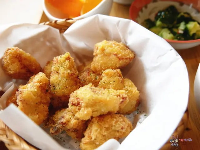 炸雞好香,Yelena忍不住先偷拿一個來吃,他是真的雞肉切塊下去炸,外酥內軟很涮嘴。