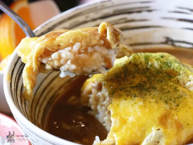 咖哩飯的上面還包了一個蛋皮,就時下流行的咖哩蛋包飯,他們的咖哩是日式帶點甜味的,不過有微微的辣,一份吃完也蠻飽的。
