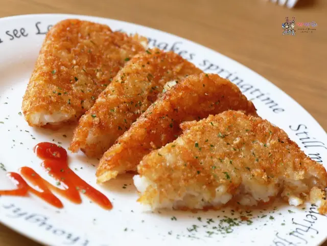 他們的炸物和外面的完全不一樣,薯餅外面炸得很酥脆,一份兩塊的份量也不小。
