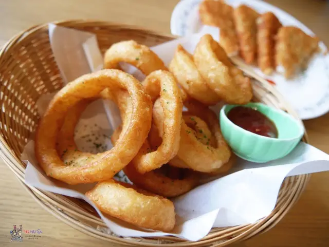 洋蔥圈則是用整顆洋蔥切片下去炸,不是一般那種切碎的洋蔥,很多汁又充滿洋蔥的甜味,如果喜歡一定不要錯過。