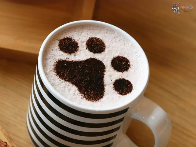可可歐蕾上用可可粉撒出貓爪造型,好適合在IG打卡啊!喝起來是比較偏奶一點的,不是很濃的可可,小朋友喝剛剛好。