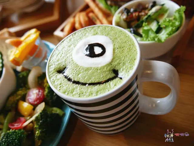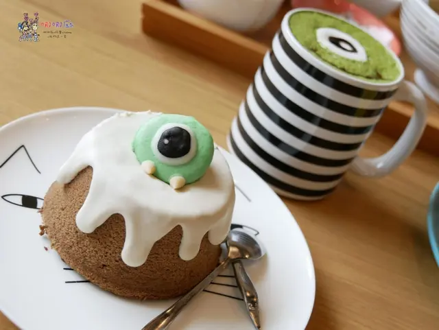 抹茶歐蕾則是大眼怪的造型,但對我這種重度抹茶控來說,他們的抹茶歐蕾不太夠味,但很好拍。