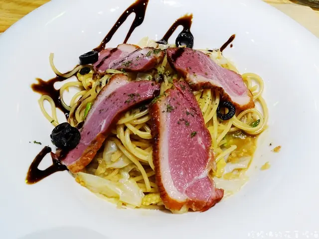 鴨胸肉口感軟嫩,裡面的蔬菜蠻鮮甜的,義大利麵醬汁鹹度適中