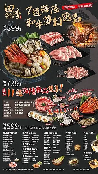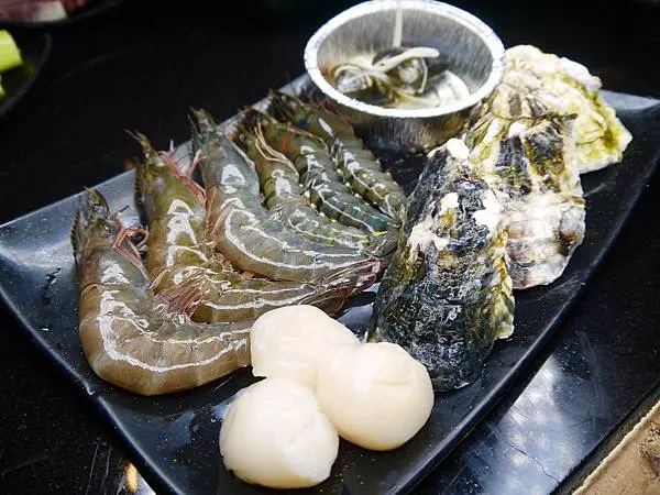 北海道生食級干貝、鮮烤蛤蜊、黑虎蝦和金鑽大蝦,