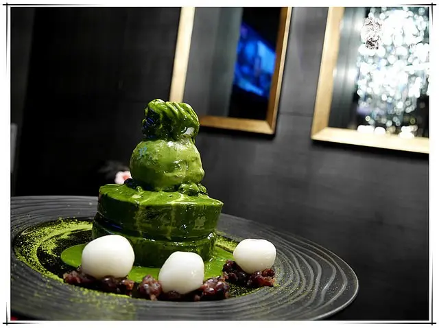 抹茶醬非常濃郁味道清香但有點偏苦,