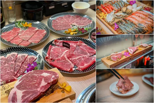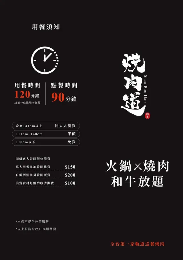燒肉道有三種價格589元可以選擇超值套餐30品以上、789元有豪華套餐50品以上、989元是旗艦套餐70品以上可選,消費均收10%服務費,用餐時間以120分鐘為限,另外,加價599元就有日本A5和牛、頂級鮭魚菲力排、Prime頂級無骨牛小排可以加點,加價199元還有日本SAPPORO啤酒無限暢飲,一整個太威了