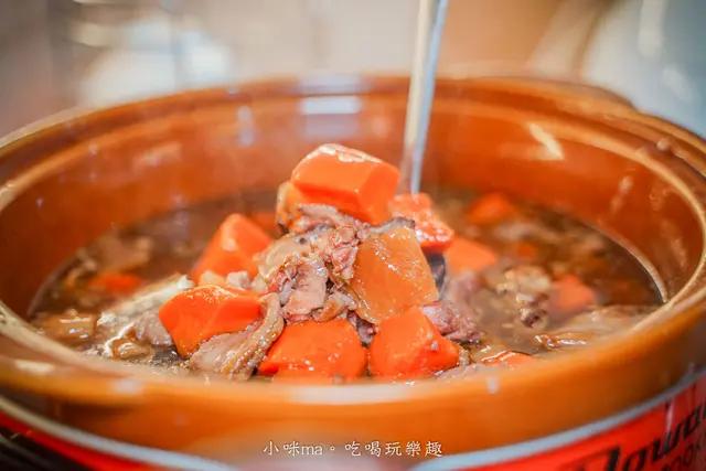 除了剛剛自助區有王子麵可以拿取外,旁邊還有一鍋店家自己滷的牛肉,天啊~一打開香味撲鼻,裡面的料也太實在了,立馬挖了一碗白飯淋在上頭,肉都還沒開始烤就先嗑完一碗了