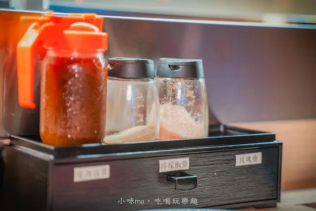 燒肉沾醬、檸檬椒鹽、玫瑰鹽都會擺在桌上,吃燒肉只要沾點玫瑰鹽就好吃啊