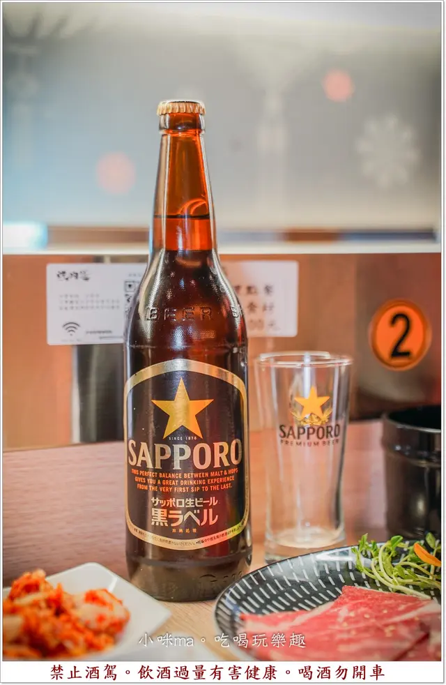 吃燒肉就要大口配酒,來燒肉道一個人只要加價199元就有日本SAPPORO啤酒無限暢飲,這也太划算了吧,用餐時間120分鐘,喝個2瓶就能回本,但是要記得喝酒不開車,開車不喝酒啦