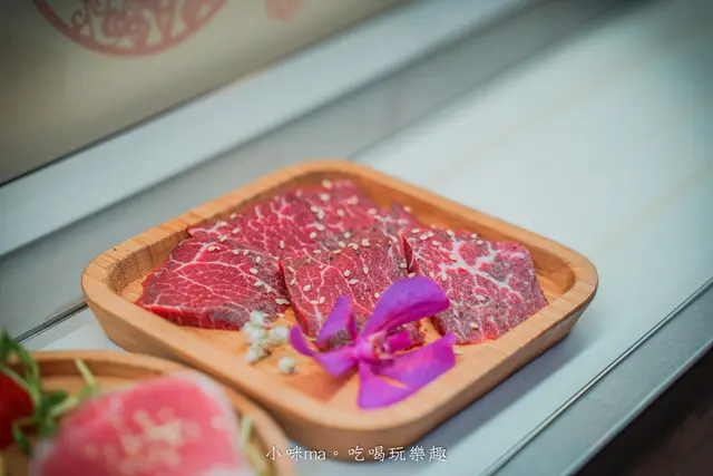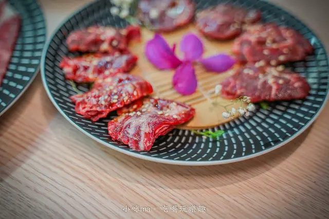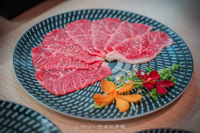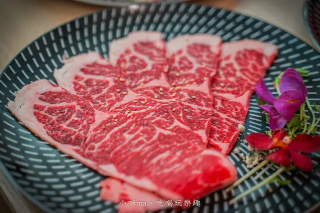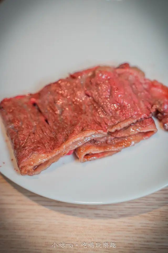 擁有大理石般的油花,肉質比較細嫩,帶有微微的甜味,讓人一片接著一片停不下來