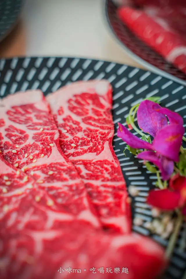 只要輕涮5~7秒就可以起鍋,這油亮亮的粉嫩色澤實在太誘人了,一入口可以改受到他的厚實感,嫩度跟牛小排有點像,只要沾點玫瑰鹽就超好吃的