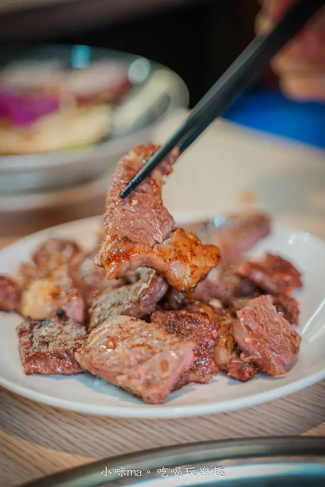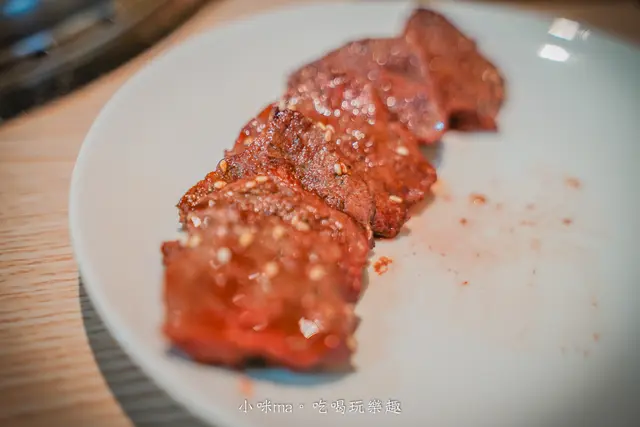 我最愛的牛小排當然不能錯過,我喜歡他切得有點厚,烤好後每一塊都保有豐富的肉汁,我真的很推燒肉道的牛肉,吃到這裡完全無雷,每一種都好吃到點頭啊
