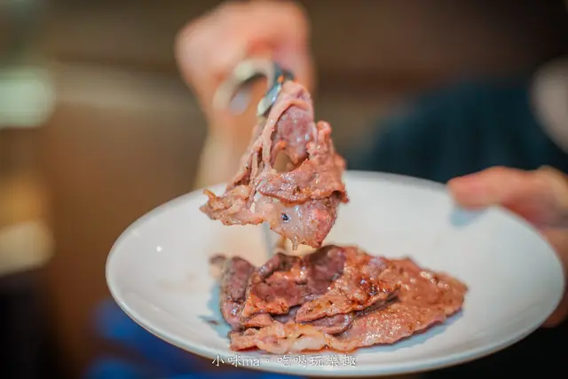 烤肉喜歡吃瘦一點的人可以點板腱牛,肉質偏結實又可以吃到嫩筋QQ的滋味,吃起來很有嚼勁