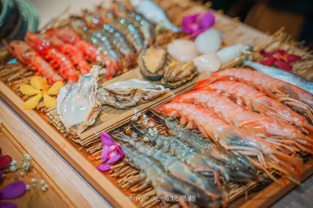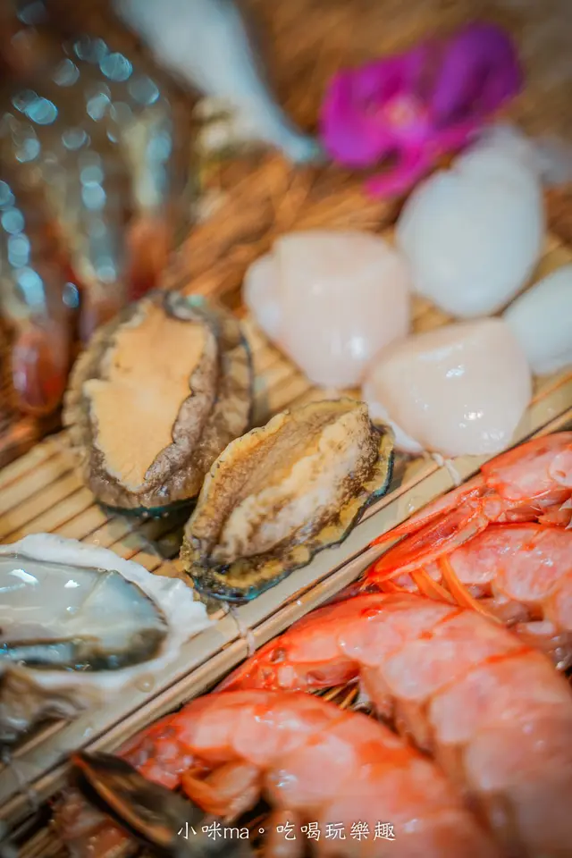 燒肉道不只有肉,彭湃的海鮮這邊也有啦,光蝦就有四大品種,每一種都是吃到飽,完全不怕你吃耶,愛吃海鮮的人也不能錯過他肥美的生蠔跟Qㄉㄟㄉㄟ的鮑魚,這樣點一輪都比外面單點的海鮮拼盤高級又多樣,一定有人問怎麼沒有蛤蜊? 蛤蜊都幫你處理好包成一盒盒房在自助冷藏櫃,你愛吃幾盒就吃幾盒唷