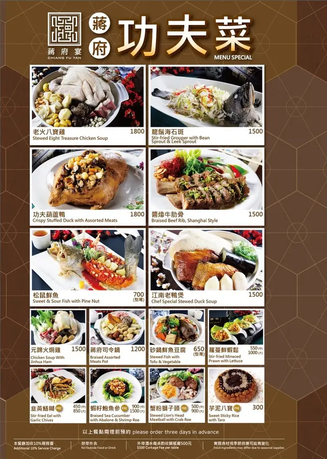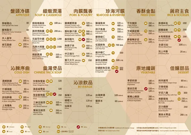 蔣府宴人文主題餐廳,是以兩蔣最喜愛的江浙料理為基礎,再配合台灣人飲食習慣加上主廚的巧思下,展現全新江浙菜,