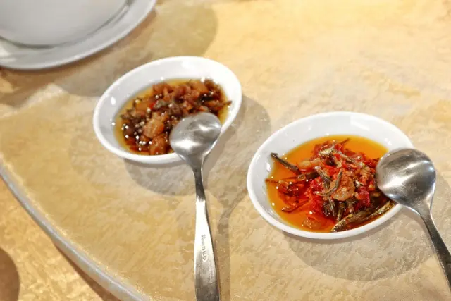 ▲店裡熱賣佐料「丁香小魚辣椒醬」、「X.O龍皇醬」拌飯拌麵料理都很合適,鹹香夠味,若喜歡櫃檯前也有販售瓶裝,