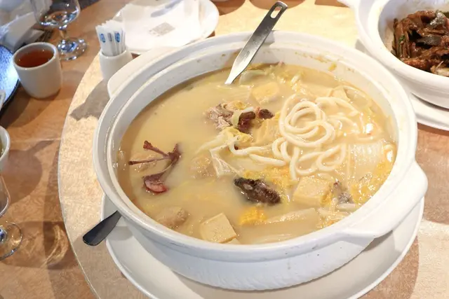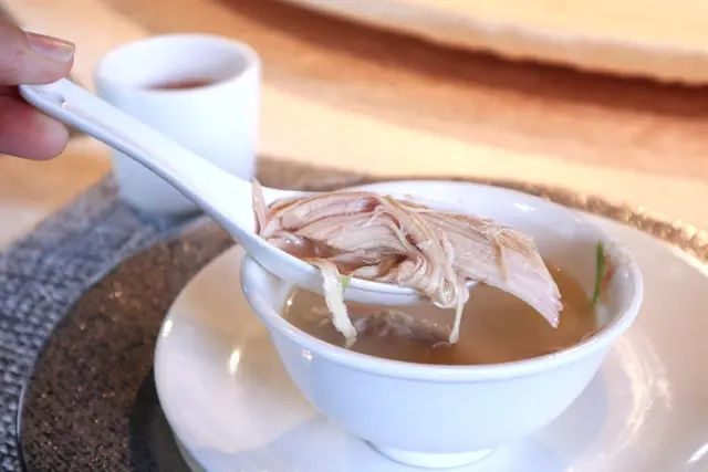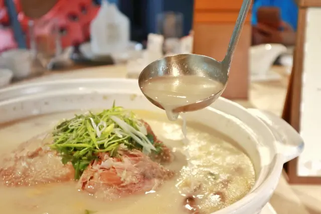 湯底使用金華火腿、豬大骨、干貝等一起熬煮,燉了10多個小時後,湯味濃厚鮮美、藏不住滿滿的膠原蛋白,熱呼呼的湯品暖心又開胃令人忍不住添了好幾碗。