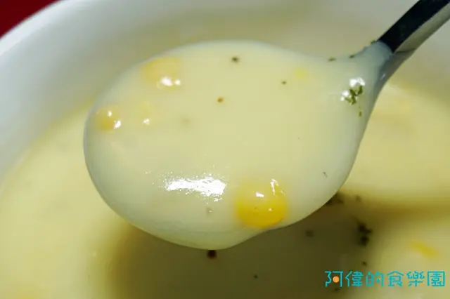 這碗玉米濃湯口感細緻,沒有一般牛排店喝到那種粉粉的感覺,且玉米粒還不少,越喝越好喝。