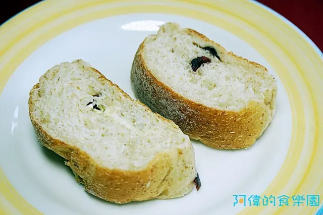 餐前麵包,看起來貌不驚人的麵包,可別小看它,實在好吃得不得了!它是軟包,中間還夾了一層起司及葡萄乾,非常香,但不是那種香料的香,是麵香與起司的奶香混合,這麼好吃的麵包還能無限續吃,實在太棒了!