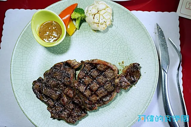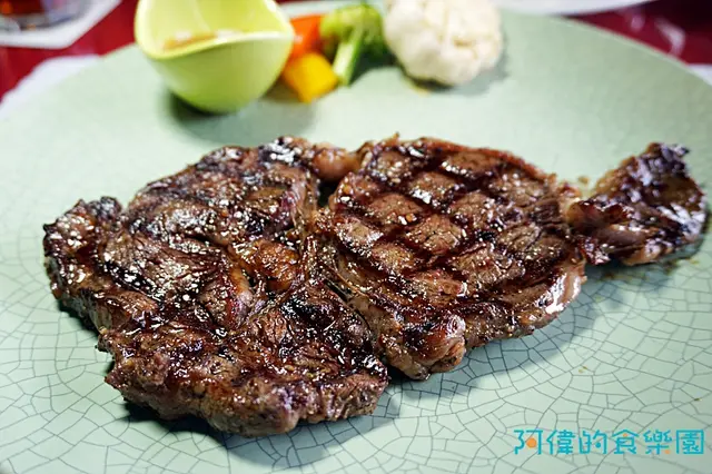 肋眼適合喜歡油脂豐富的饕客,就像阿偉一樣。這10盎司的肋眼經過主廚大火烤過,有著漂亮的網狀紋路,看起來就很讓人垂涎。