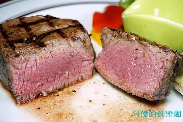 老闆說店裡的菲力用的是美國自然牛,也就是說不打抗生素、不打藥(不含瘦肉精),在自然圈養的環境下成長的牛隻。由於不打抗生素,因此牛隻要能健康長大不會夭折實屬不易,也因此使得這樣的牛肉價格偏高。就像這塊6盎司的菲力牛排,其實有它的價值所在。
