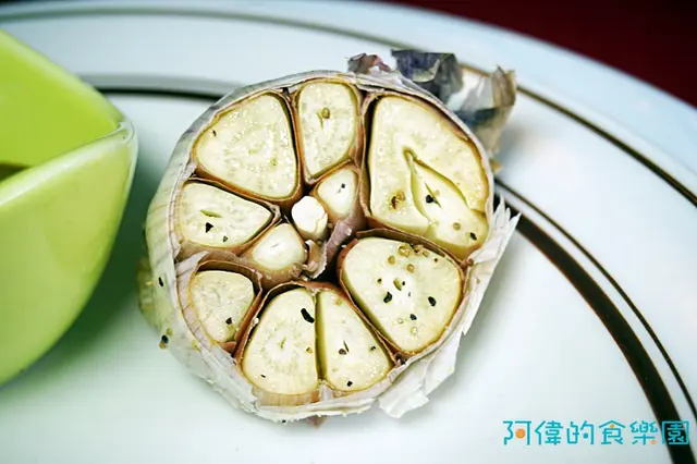 盤上的配菜還有蒜頭,跟牛排一起吃蠻提味的。
